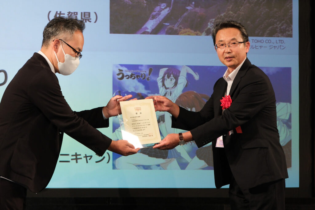 令和7年9月20日(土)~21日(日)に京都国際マンガ・アニメフェア2025(京まふ)が開催され、アニものづくりアワード実行委員会が主催する、アニメ業界と一般企業・団体とのさらなるビジネス活性化を目指し、優れたコラボ商品、広告クリエイティブ、プロモーション、事業などを顕彰する取組、「京都アニものづくりAWARD2025」にて、アニメ「うっちゃり!」がオリジナルコンテンツ部門、地方創生部門にノミネートされ、地方創生 部門にて『銅賞』を受賞しました!